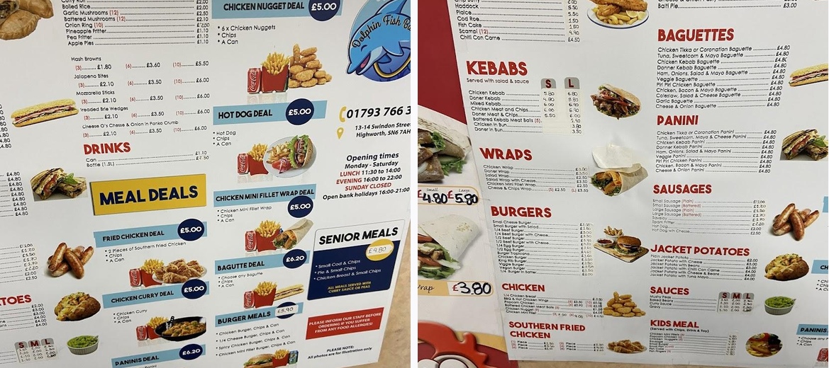 Discover the Dolphin Fishbar in Highworth for the best fish and chips takeaway! With affordable prices, a casual atmosphere, and generous portions, enjoy delicious scampi, kebabs, and more. Perfect for families and solo diners alike, we offer dine-in, takeaway, and delivery options. Rated 5 stars for hygiene, we ensure quality and taste in every bite. Visit us for a quick and satisfying meal today!