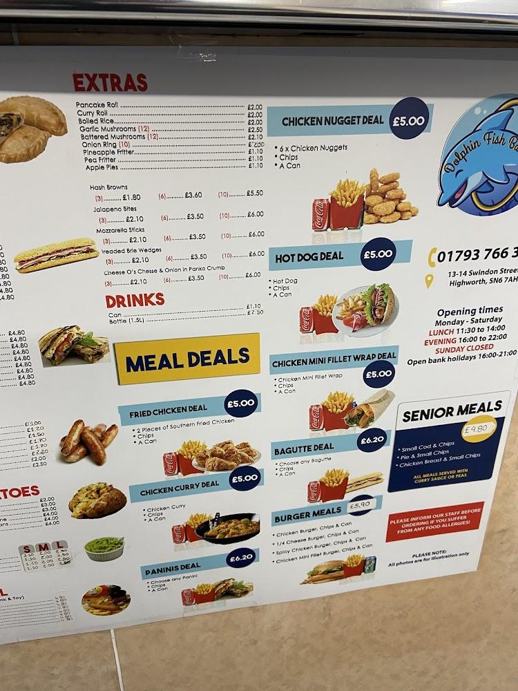 Dolphin Fishbar sits at a prime location on Swindon St in Highworth, a charming market town in Swindon, United Kingdom. This area is known for its quaint streets and community vibe, which makes visiting Dolphin feel like a warm, local experience. Accessibility is prioritized here, with wheelchair-accessible seating and a casual atmosphere that welcomes everyone including families and solo diners. You'll find the fishbar open every day of the week, so there's no need to plan your visits around your schedule. Parking is hassle-free, with free street parking available, making a trip here easy and convenient. It’s the perfect place to pop in, order your favorites, and enjoy them in one of the nearby parks or relax at the outdoor seating. With a five-star hygiene rating, the kitchen staff take cleanliness seriously, ensuring you not only get great food but also peace of mind.